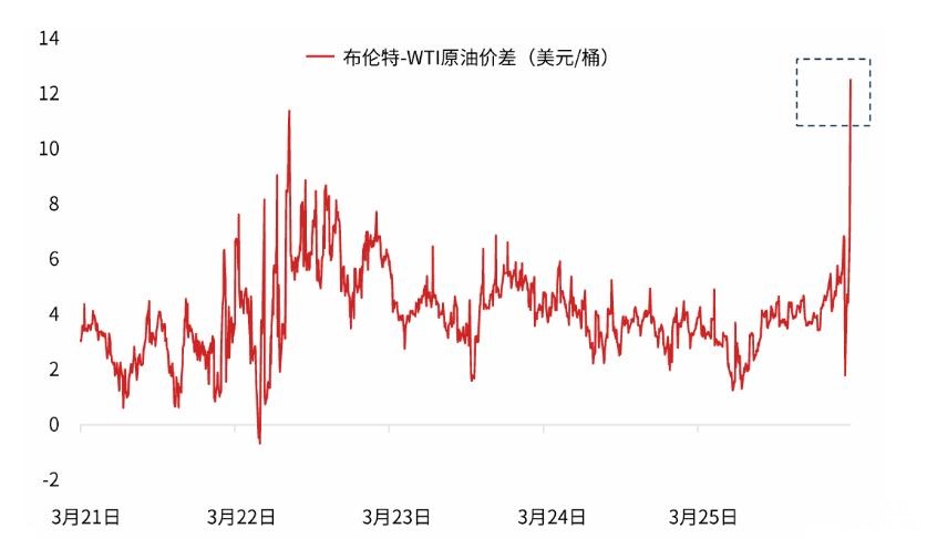 上周,伊朗战争持续升级,伊朗袭击了卡塔尔的能源基础设施,布伦特原油价格升至108.65美元/桶,布伦特-西德克萨斯原油价差扩大至12.51美元。尽管特朗普认为美国可以单方面决定战争何时结束,但伊朗政权的言论却暗示了相反的情况。